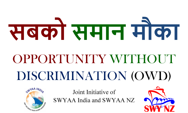 PPORTUNITY WITHOUT DISCRIMINATION (OWD) Joint project of SWYAA India and SWYAA NZ (A campaign to raise awareness and start the conversation to celebrate that its OK to be different…) |